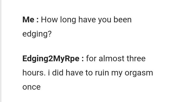 Me : How long have you been edging?
